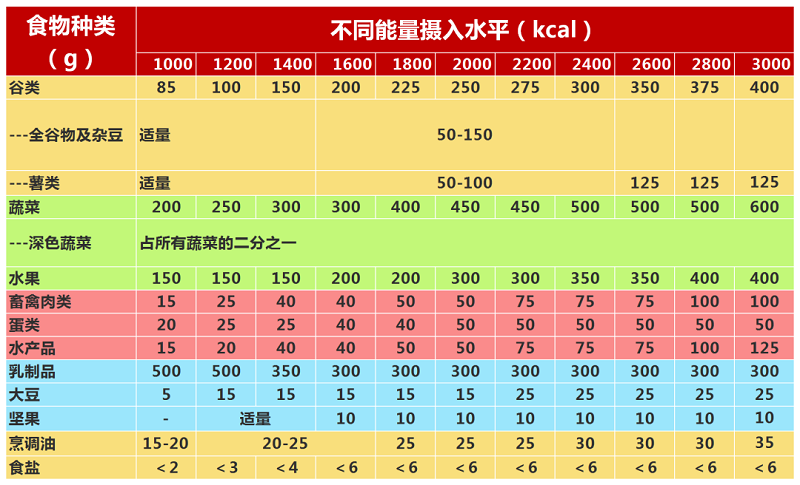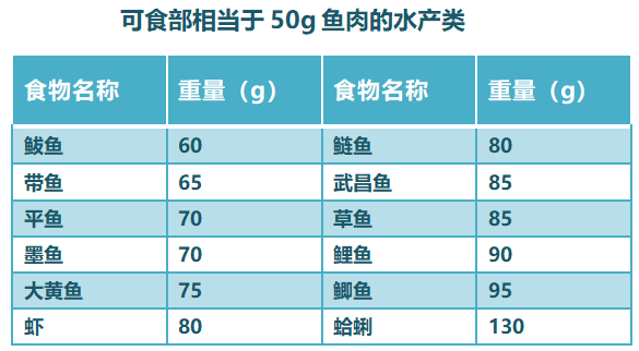 水產禽畜蛋類:每周至少5種,鼓勵優選水產類、蛋類和禽類,畜肉類以瘦肉為主。