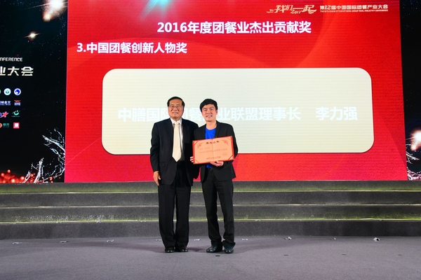 ▲中膳李力強獲得中國團餐產業人物獎,中國烹飪協會李亞光副會長頒獎