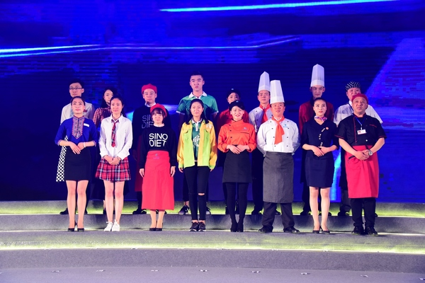 當天下午,還專門舉行了中國團餐人文化展示——企業制服秀,全國各地企業獨特新穎的企業服裝不僅代表的是企業文化更是一種品牌象征。中膳黑色文化衫上的SINO DIET義為“中國飲食”,紅色圍腰和紅色帽子是中膳朝氣蓬勃的象征。