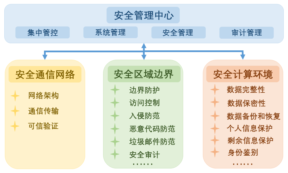 中天瑞合根據(jù)等保2.0標(biāo)準(zhǔn)要求,在網(wǎng)絡(luò)安全建設(shè)上遵循“一個中心”管理下的“三重防護(hù)”體系,分別對計(jì)算環(huán)境、區(qū)域邊界、通信網(wǎng)絡(luò)體系進(jìn)行管理,實(shí)施全方位主動防御、動態(tài)防御、整體防控和精準(zhǔn)防護(hù)。